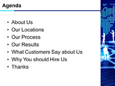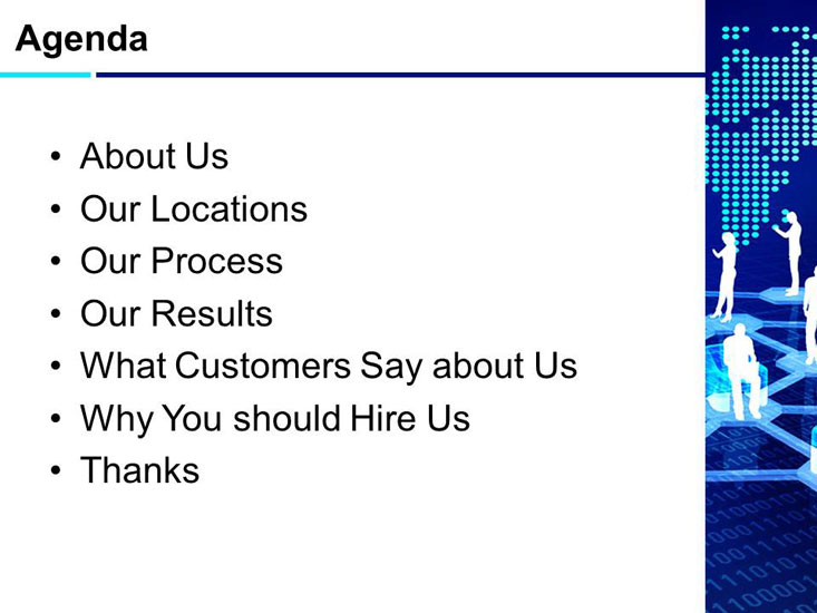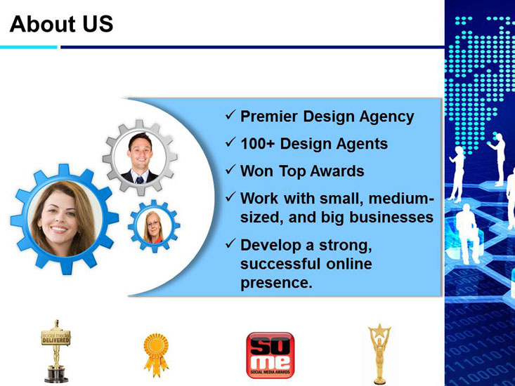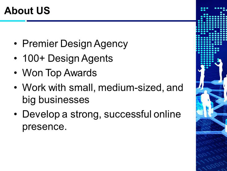 We have a team of Professional Powerpoint Designers who create custom designed presentations from scratch. We focus on creating high quality presentations, based on your design requirements. All you need to do is send us your content or presentation. It can be a rough draft, or a sketch or drawing, or even something scribbled on a piece of paper. And we turn it into a professionally designed presentation.