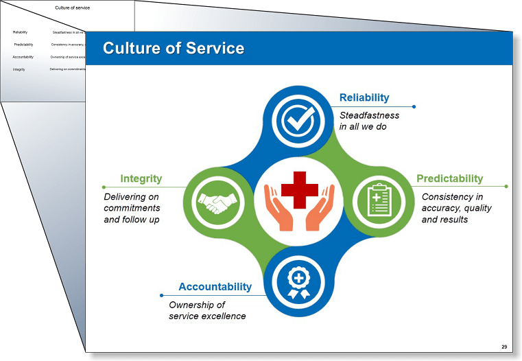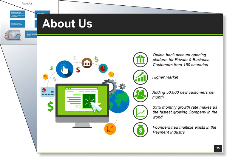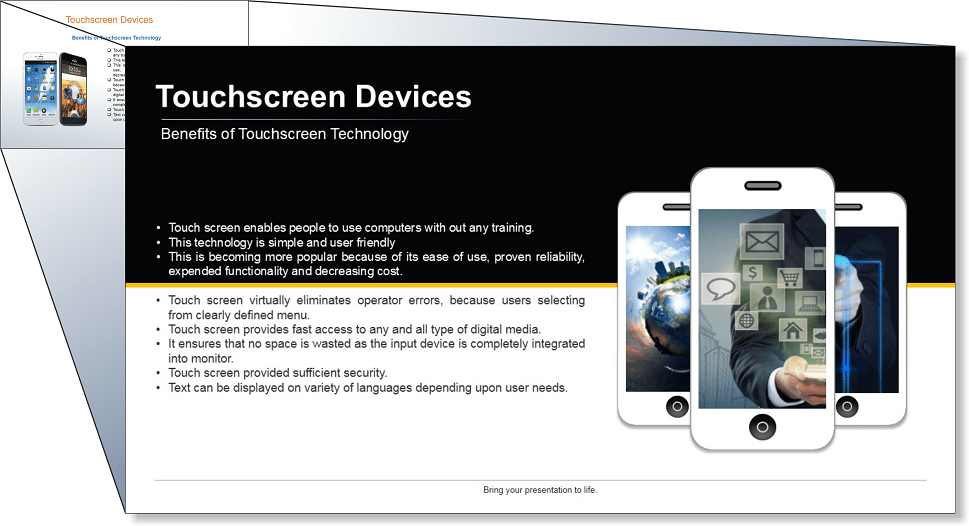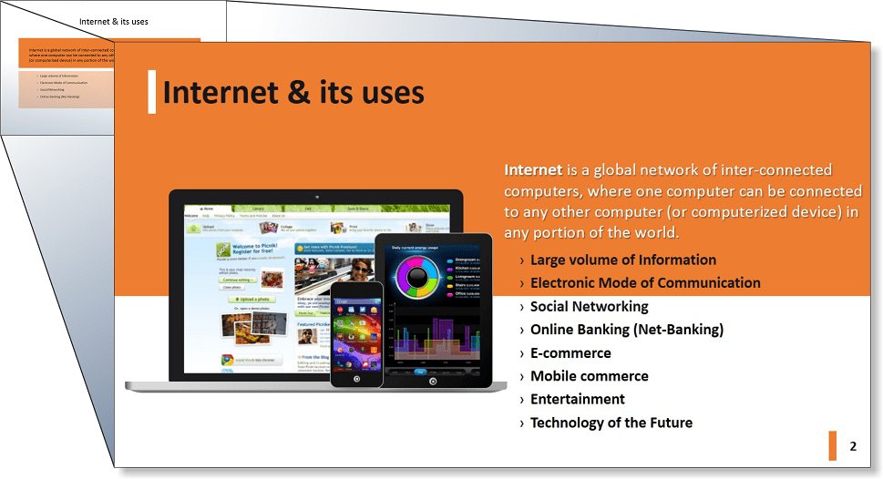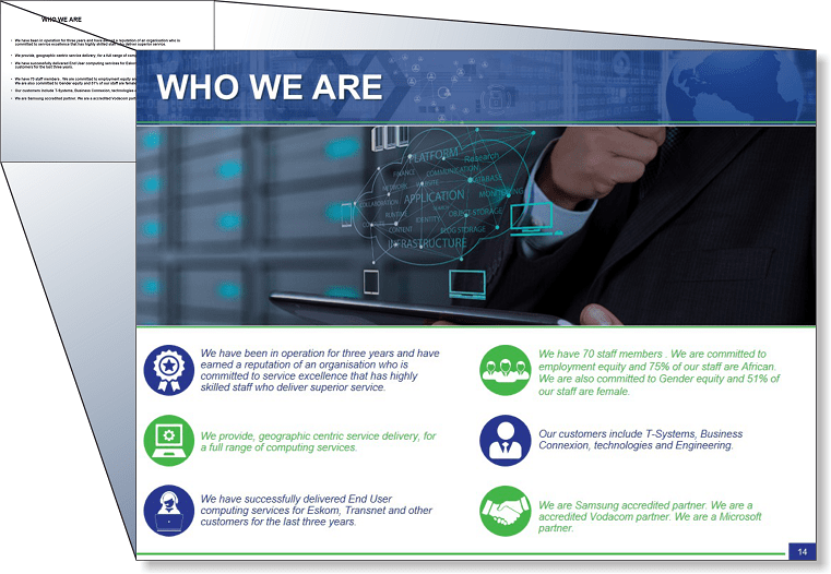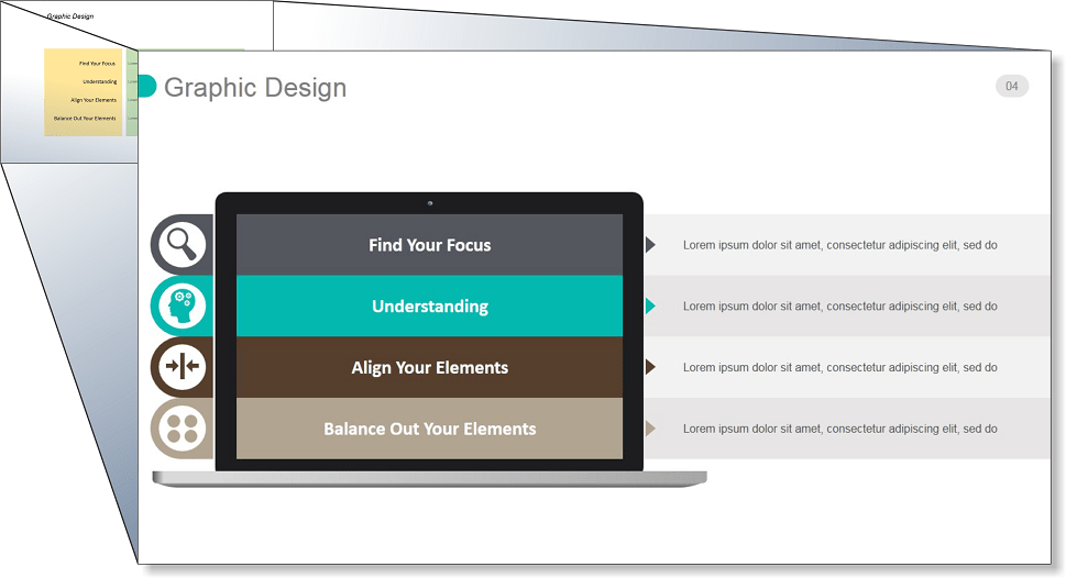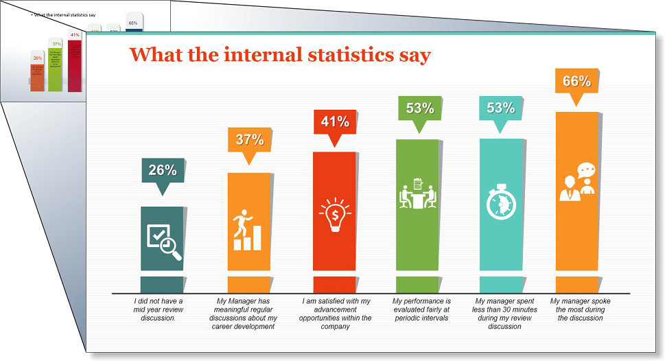 - Design slides using stunning visuals, diagrams, icons, images and illustrations.