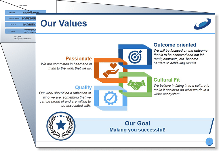 - After you approve the slides, we send you the final complete presentation. Simple!